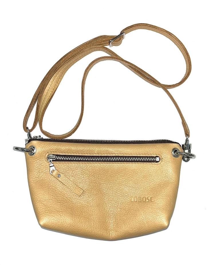 "Small Leather Crossbody Bag" by Cesar Cobos, 8 1/2" x 5 1/2" x 2", 47" adjustable strap, 2 zippered pouches, quality leather & stitching, local artist